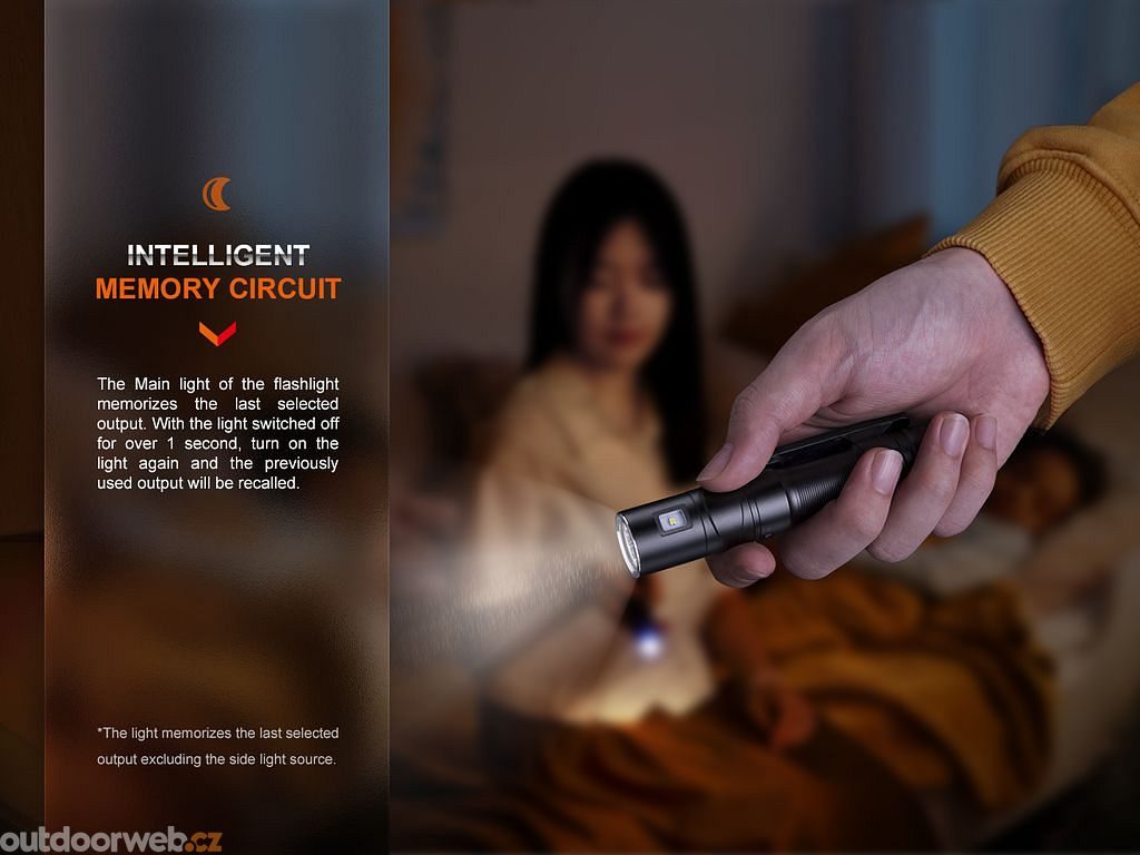 - Svítilna má paměť na poslední nastavený režim výkonu hlavního reflektoru.