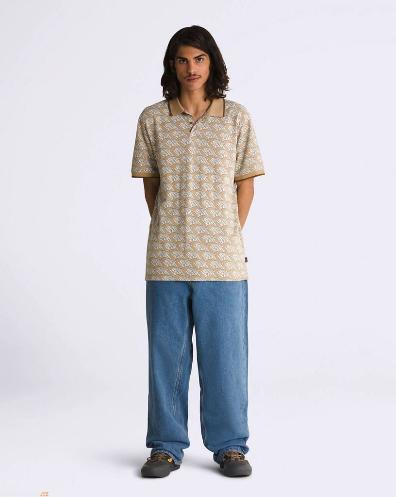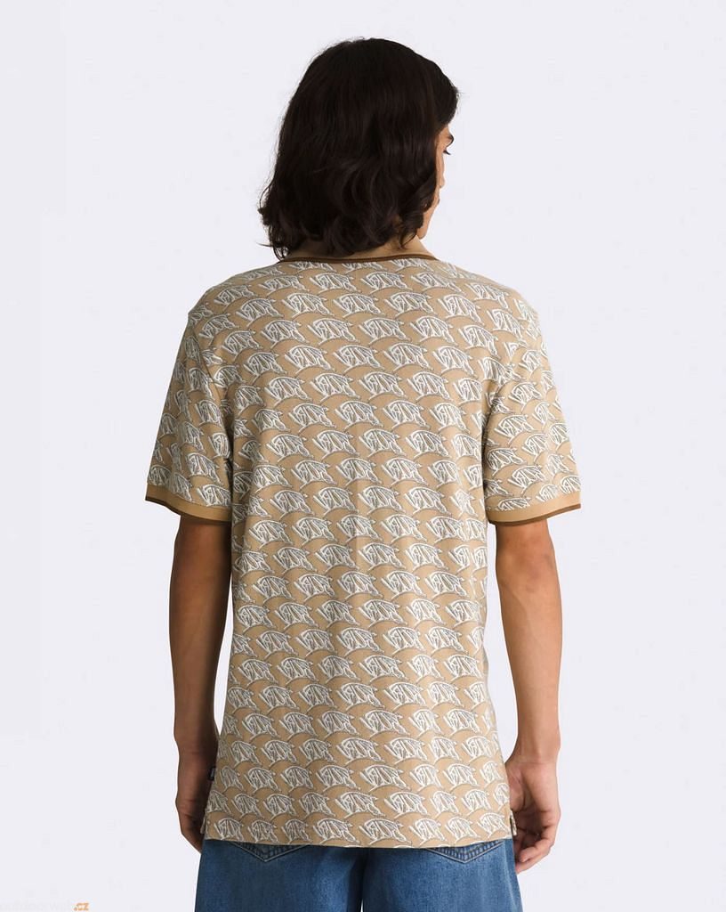 Kvalitní bavlněné pique s kontrastním hnědým lemováním na límci a rukávech odráží vysoký standard značky Vans.