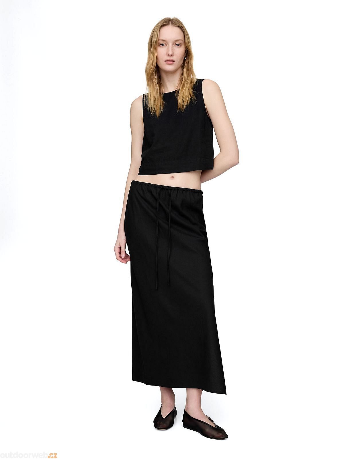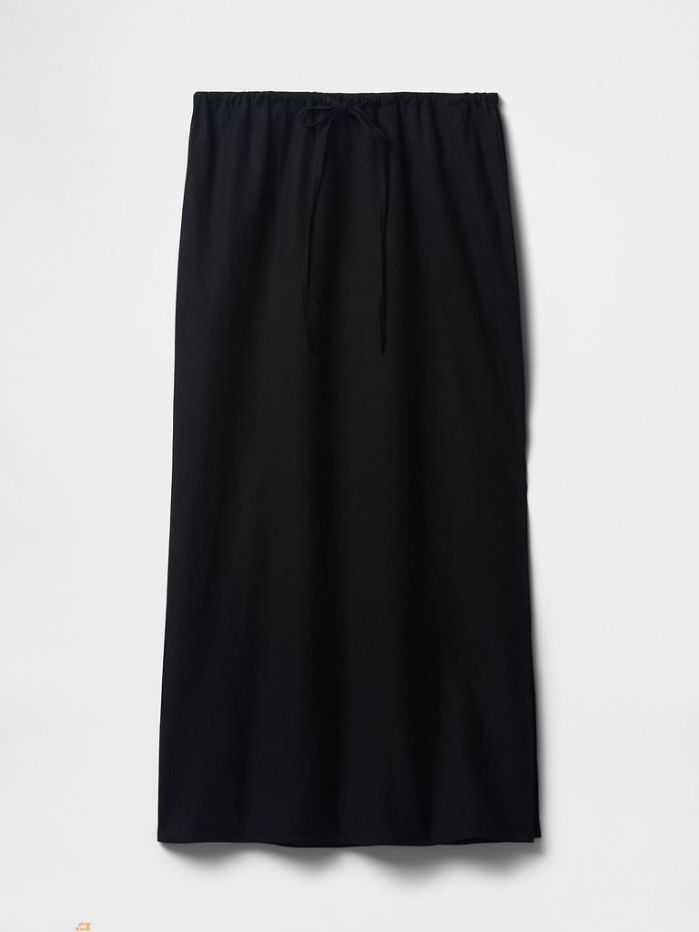 GAP Lněná midi sukně Černá