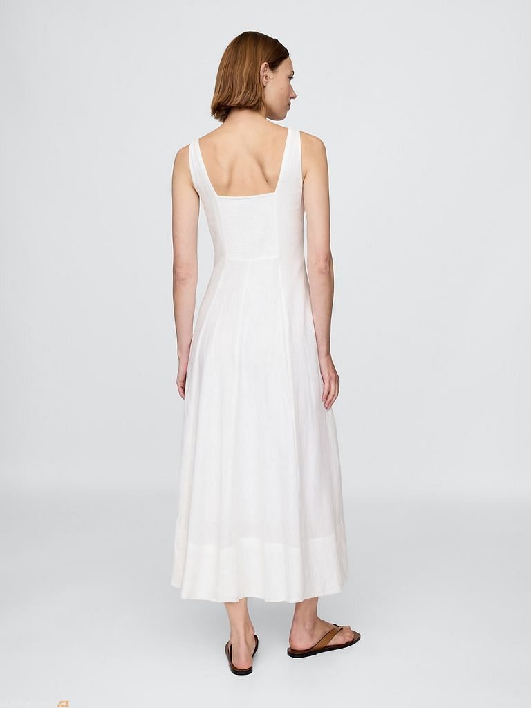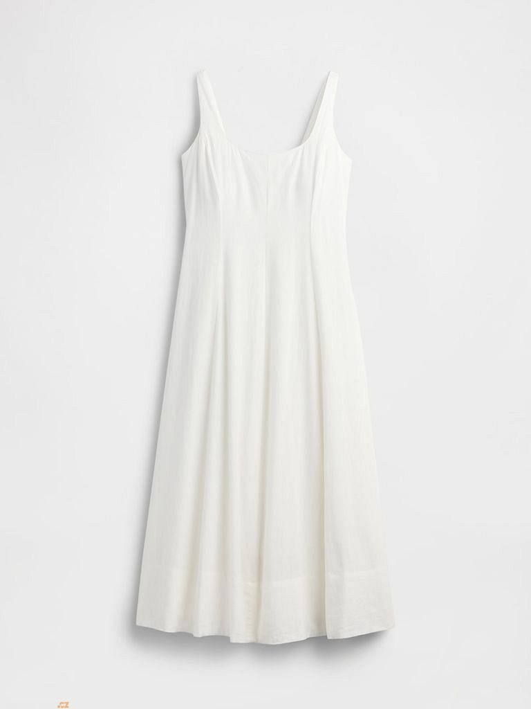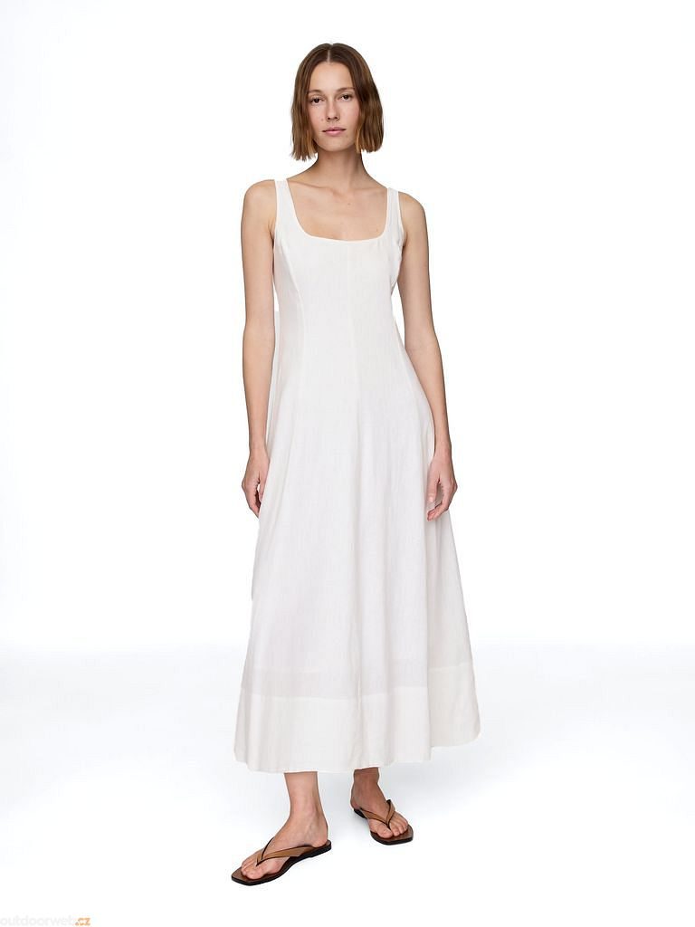 Elegantní maxi šaty z měkké lněné směsi poskytují dokonalou kombinaci lehkosti, prodyšnosti a komfortu, ideální pro teplé dny.
