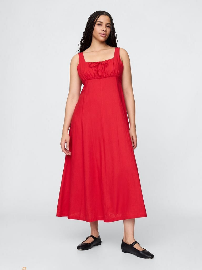 GAP Lněné maxi šaty Červená