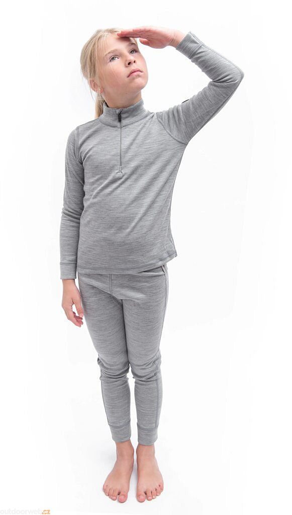 SENSOR MERINO BOLD dětský set triko dl.rukáv zip + spodky cool gray