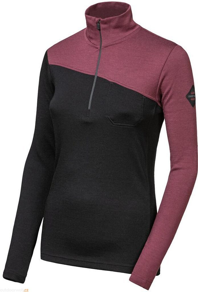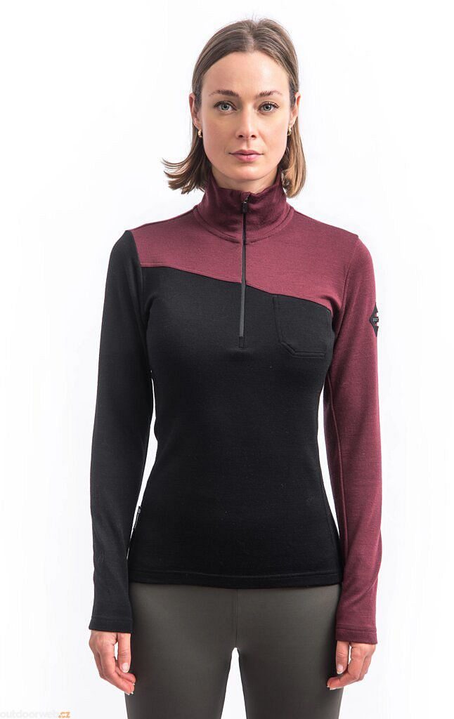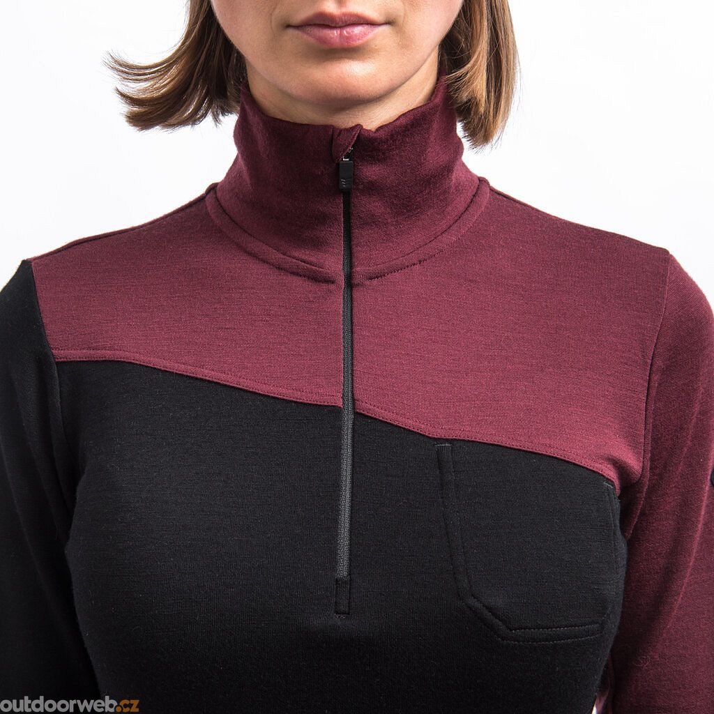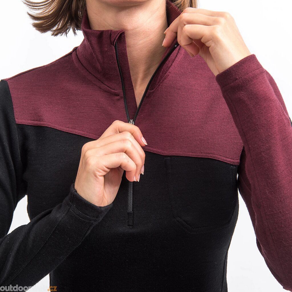 SENSOR MERINO EXTREME UP dámská mikina dl.rukáv zip černá/port red
