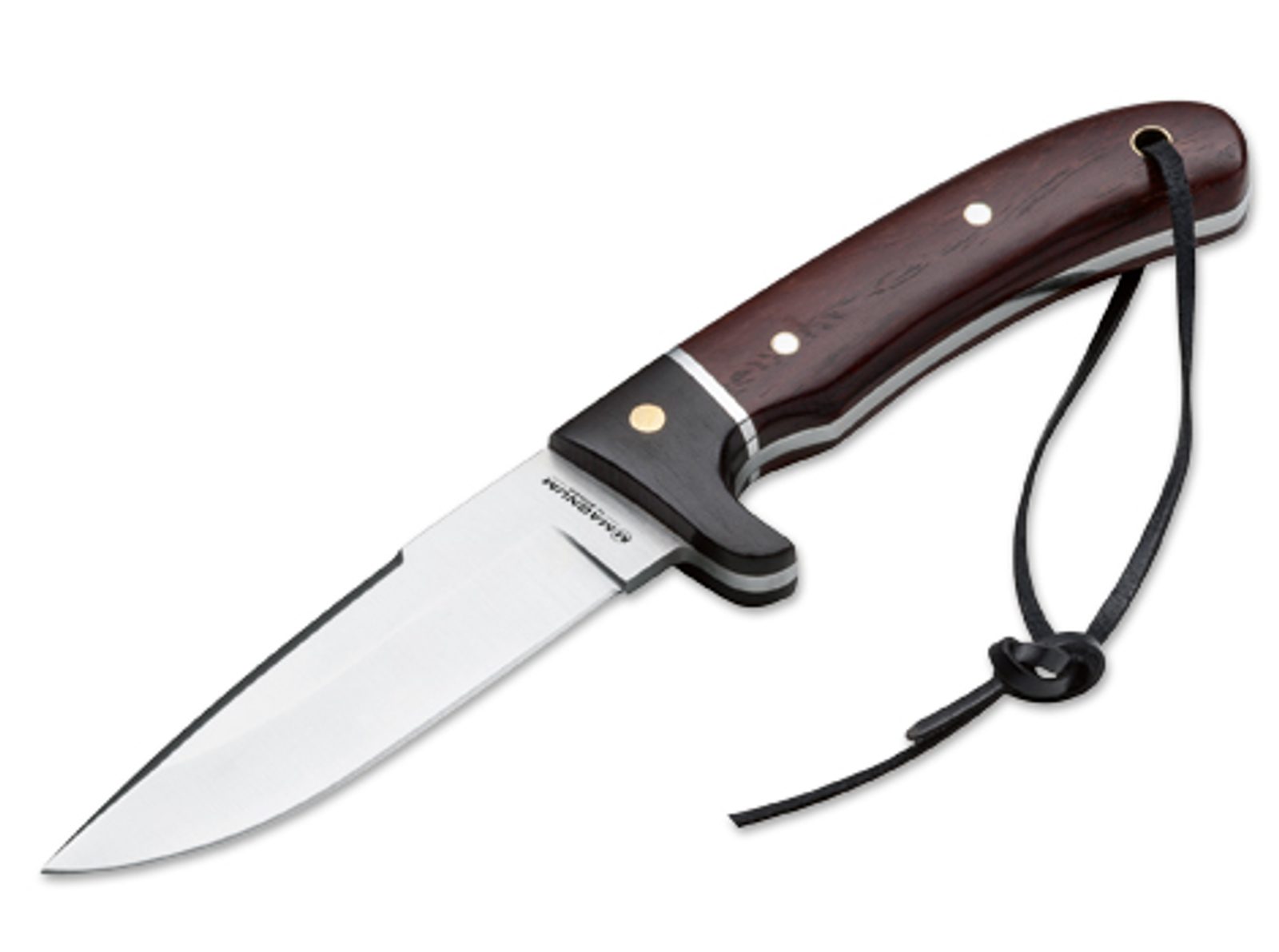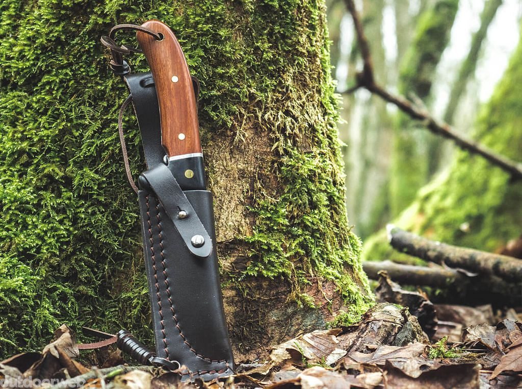 Satinovaná čepel z nerezové oceli 440A je jemně nabroušená. K tomuto krásnému noži patří propracované kožené pouzdro se zapínáním na cvok. S otvorem pro šňůru.