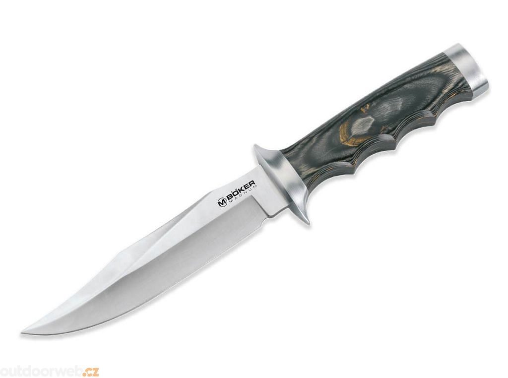 Elegantní bojový nůž s 15,3 cm dlouhou čepelí Bowie vyrobenou z nerezové oceli 440. Rukojeť z vysoce zrnité překližky je velmi dobře zajištěna v ruce díky drážkám na prsty.