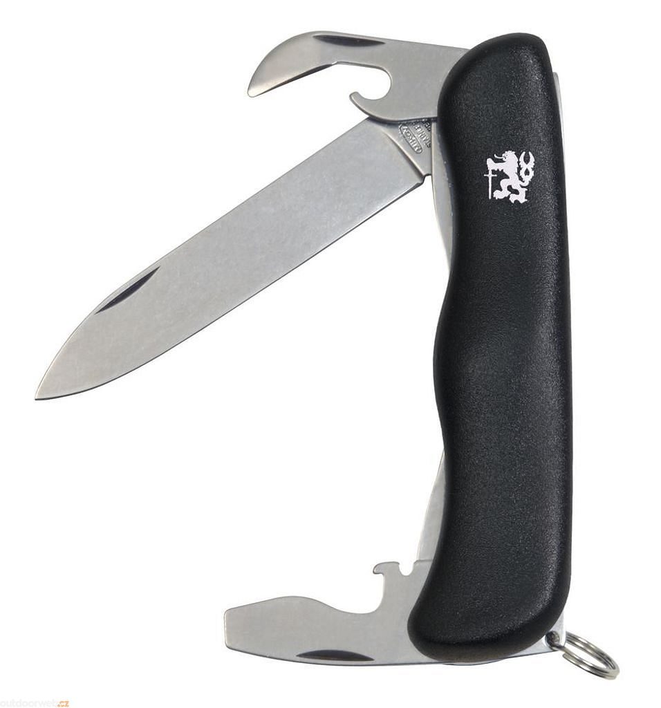 Vybavení: čepel, otvírač na lahve / šroubovák / drážka na odizolování vodičů, otvírač na konzervy, kroužek