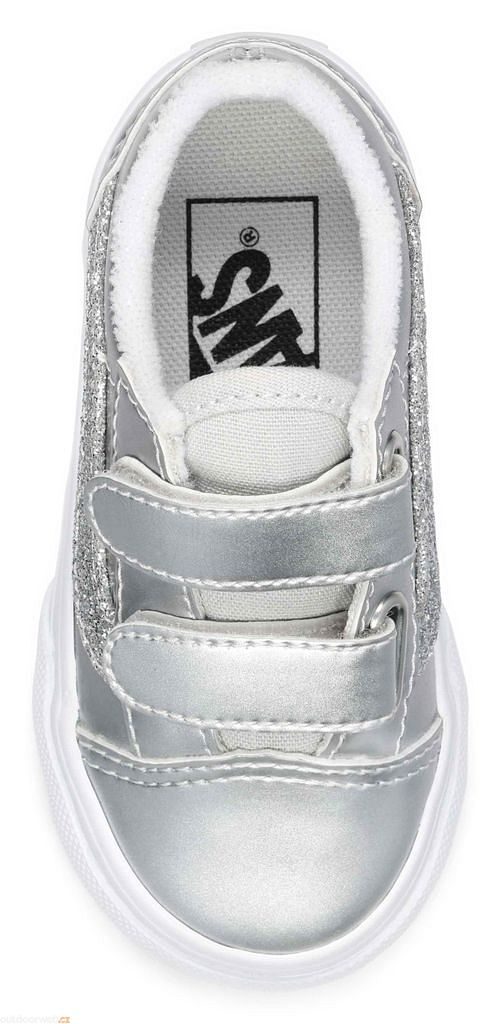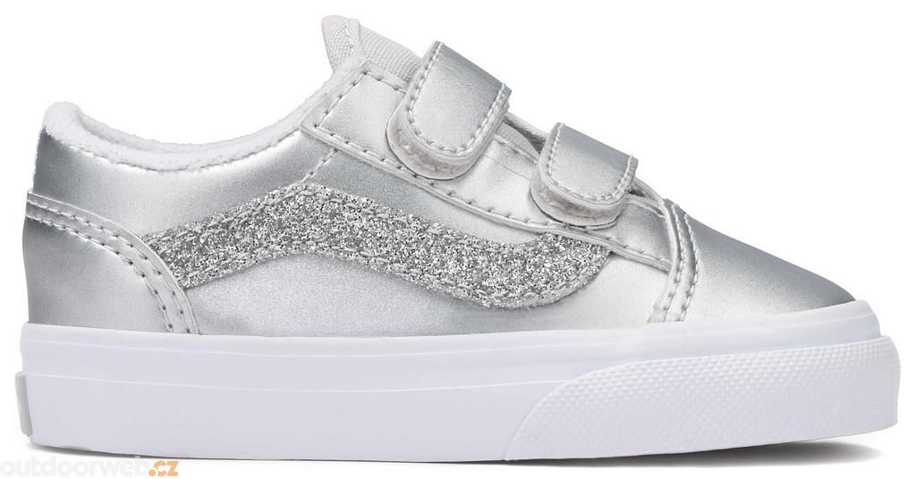 Dětské boty Old Skool V pro nejmenší představují novou podobu našich ikonických bot s postranním pruhem, protože vyměnily tradiční tkaničky za dvojité zapínání na suchá zip.