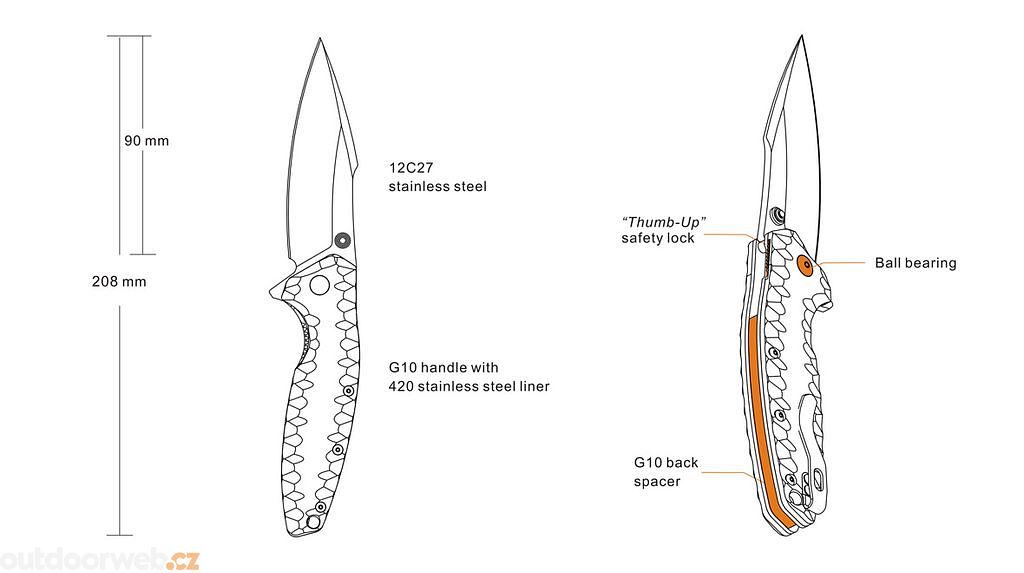 - Maximální bezpečnost: Pojistka liner lock s dodatečným zámkem "thumb up" chrání proti nechtěnému zavření.