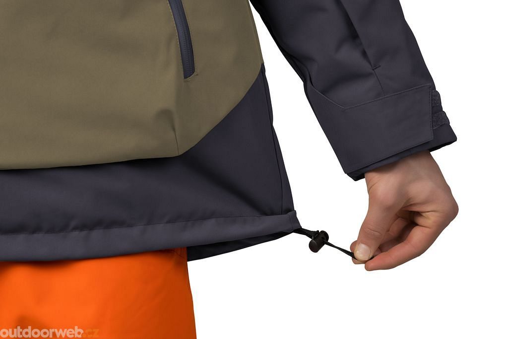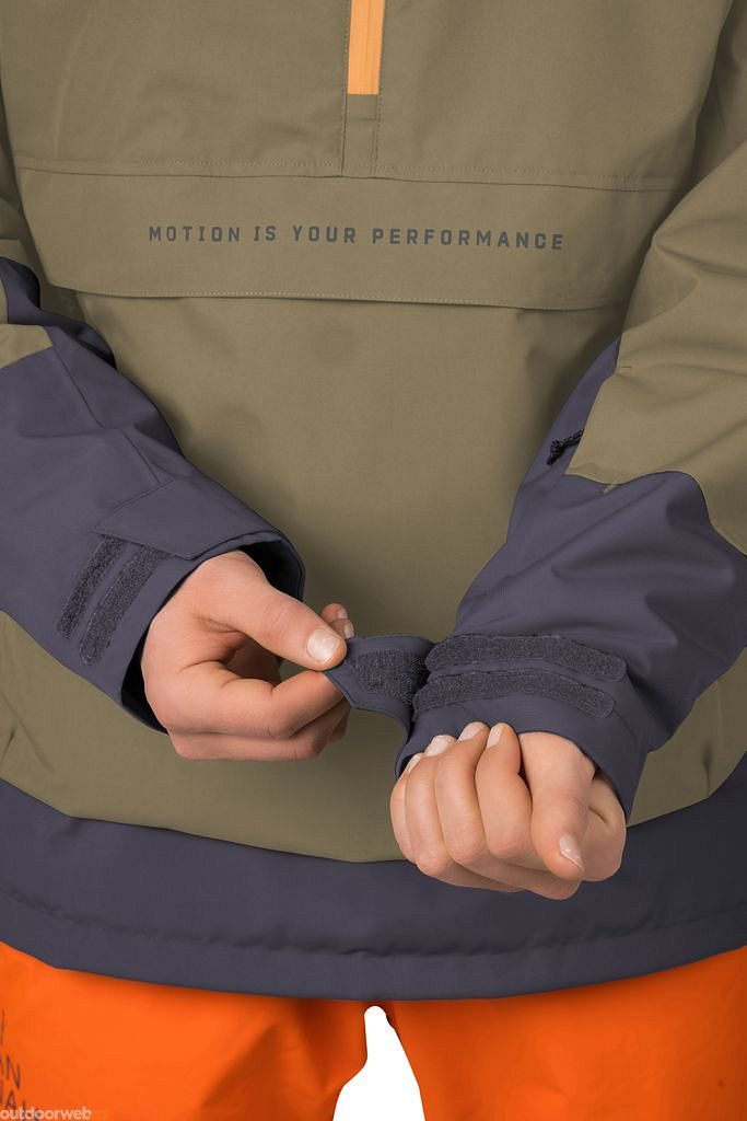 Rukávy jsou anatomicky tvarované a jejich zakončení je řešeno patkou se suchým zipem, která umožňuje regulaci obvodu. Proti vnikání sněhu je bunda zařízena sněhovým límcem v pase, elastickou manžetou v rukávu a stahováním v dolním lemu.