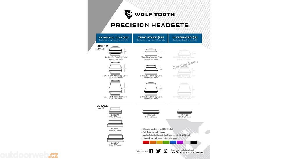 Wolf tooth však neustále přidává do svého portfolia další a další na trhu ojedinělé produkty, které jsou patentované a vyráběné ručně v USA. Tyto „univerzální“ díly navrhnuté samotnými jezdci slouží často i jako nadstavba k sériové nabídce velkých značek. Se zpracováním a důrazem na detail však posouvají měřítko kvality o laťku výš.