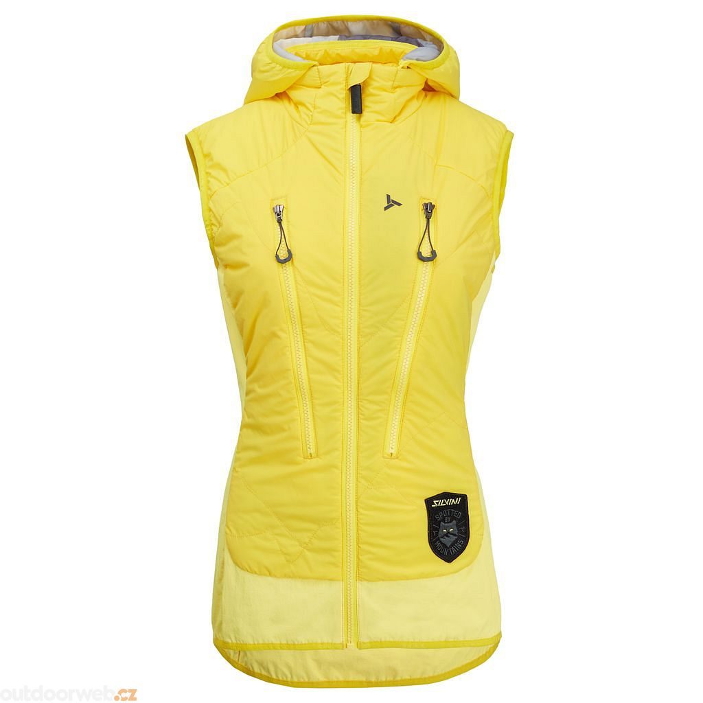 Dámská zateplená skialpová vesta s odepínací kapucí a kapsami na stoupací pásy, z větruodolného materiálu QuatroFLEX Windbreaker a izolací PrimaLoft® Gold 60g.