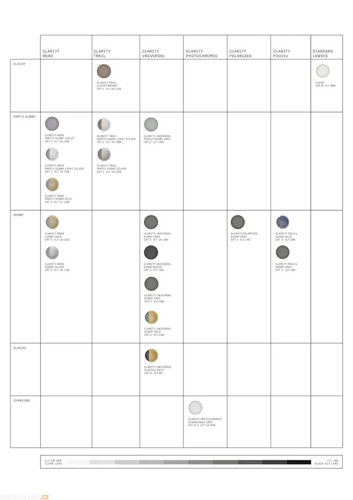 Model Clarity Road/Partly Sunny Light Silver s propustností světla 20% (VLT=20%) a kategorií 2 je ideální pro použití v polojasného počasí.