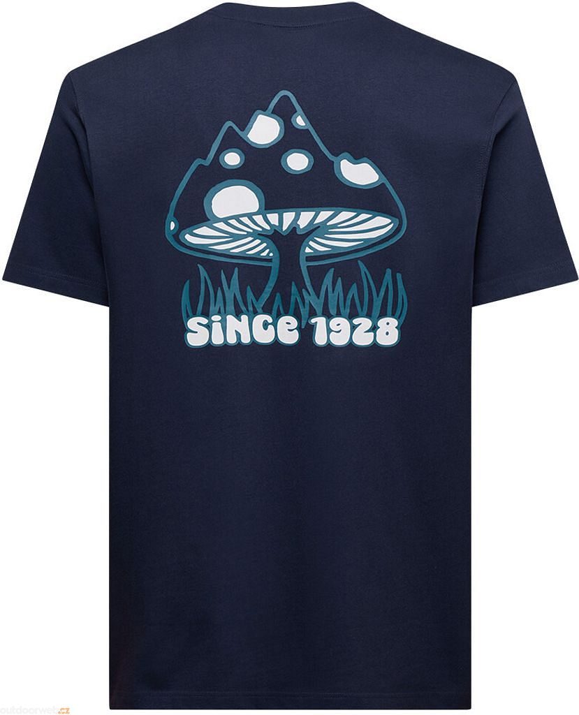 Klasický střih s krátkým rukávem a lehce volnějším „boxy" střihem vám poskytne úlevu v každé situaci – ať už lezete, surfujete volný čas nebo jednoduše relaxujete. Výrazná grafika s motivem hub na zádech přidává každému kousku osobitý šmrnc s odkazem na houbařské tradice zakladatele značky.