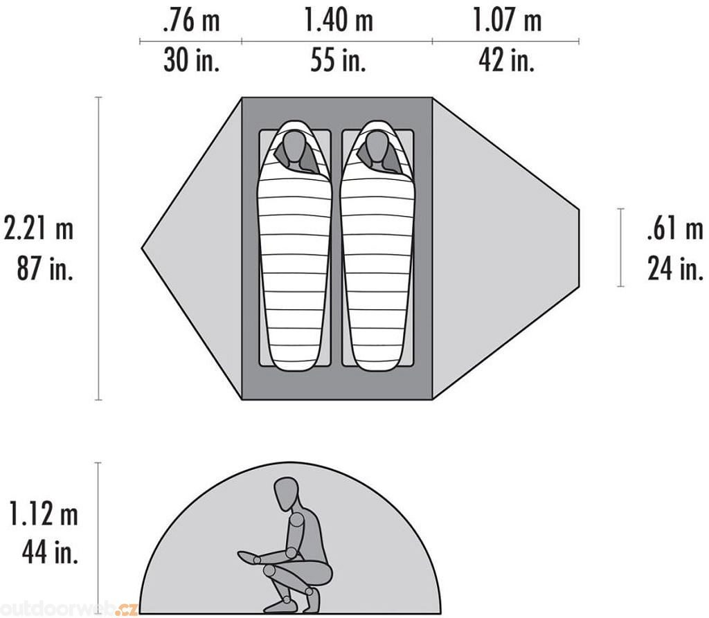 Rozměry stanu: 2,21 x 0,76 m | Vnitřní výška: 112 cm