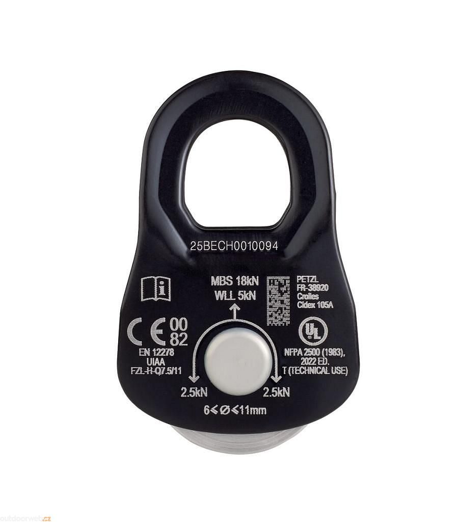 Pohyblivé bočnice vám umožní navléci lano bez zbytečných manipulation. Kompatibilita s evropskými karabinami znamená, že se kladka bez problému zapojí do vašeho systému.