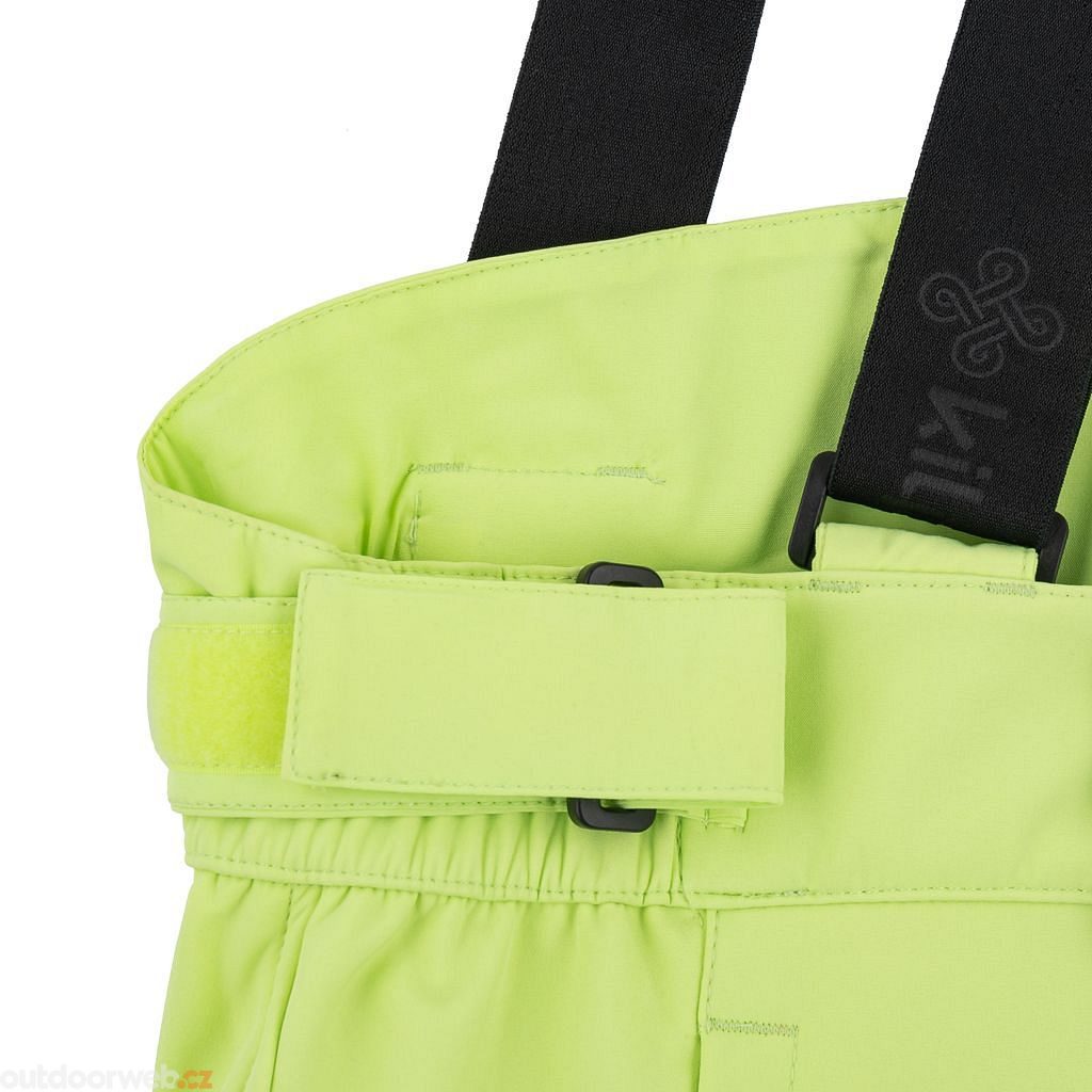 Elastický pas se stahováním na suchý zip je doplněn o odepínací, nastavitelné šle. Uvnitř zipové kapsy se nachází praktická klíčenka. Vnitřní protisněhové manžety s gumou se pohodlně nasazují na lyžařskou obuv.