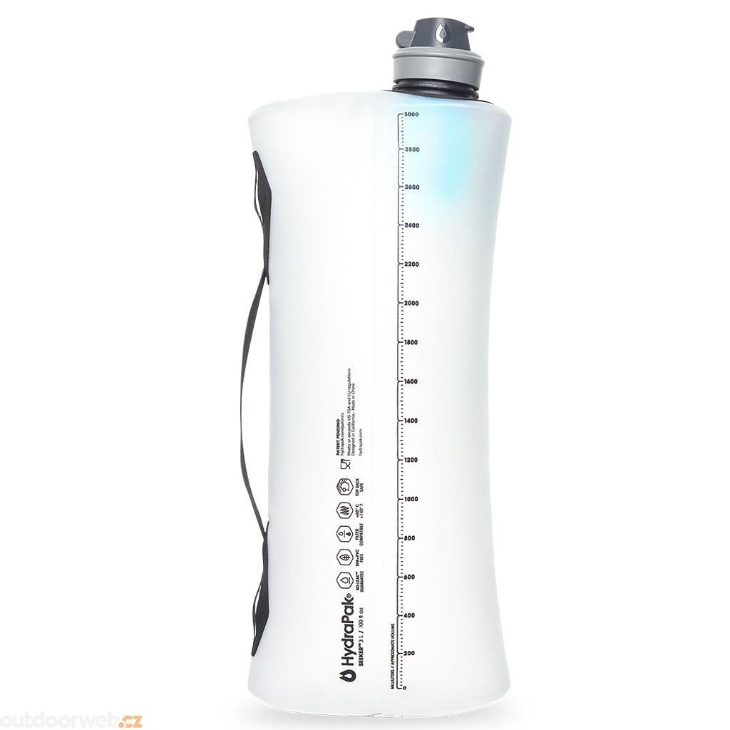 Odolná a praktická nádoba na vodu HydraPak Seeker+ o objemu 3 litrů v čiré barvě. Tato nádoba je ideálním společníkem pro outdoorové nadšence díky svým funkčním vlastnostem.