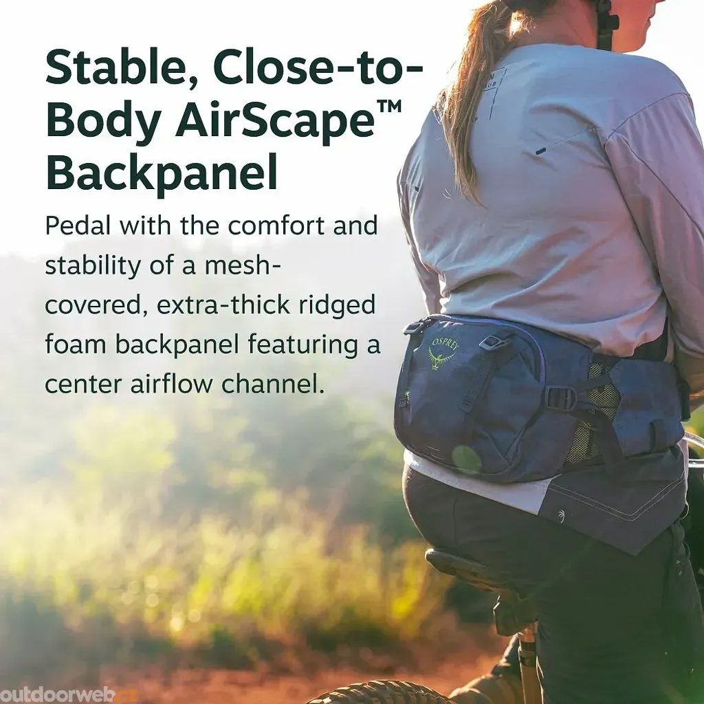 Ergonomický bederní pás s airmesh potahem a přiléhavý zadní panel AirScape™ poskytují vysoký komfort, stabilitu a efektivní odvětrání. Díky praktickým kapsám, kompresním popruhům a možnostem uchycení výbavy je batoh skvělým parťákem pro trail, enduro i delší vyjížďky.