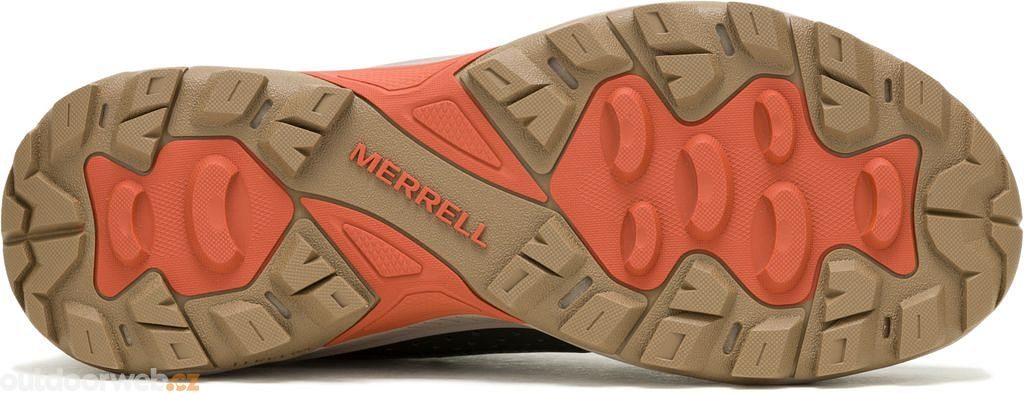 Odolná gumová podešev Merrell zajišťuje jistý záběr a stabilitu na různorodých površích během vašich outdoorových výprav.