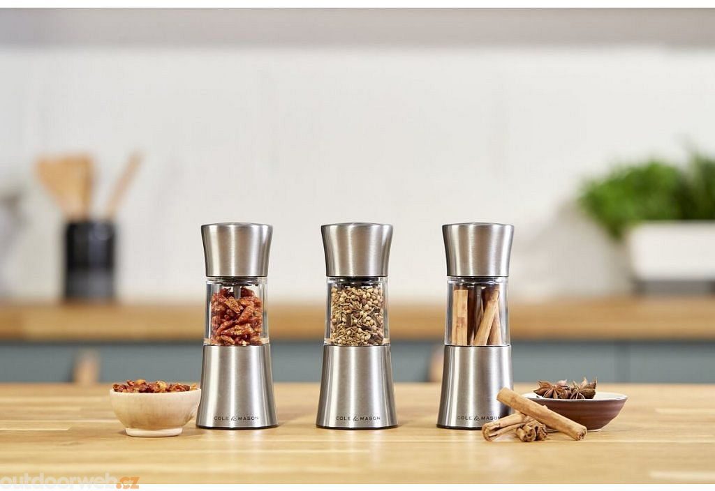 Cole & Mason nabízí výrobky pro každou práci v kuchyni, od vaření až po servírování a konzumaci - profesionálně zpracované mlýnky na koření, mlýnky na sůl i pepř, hmoždíře i samozavlažovací květináče.