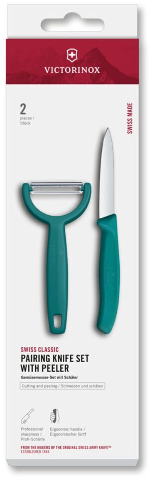 Obsah sady: nůž + Y-škrabkaMateriál: nerezová ocel