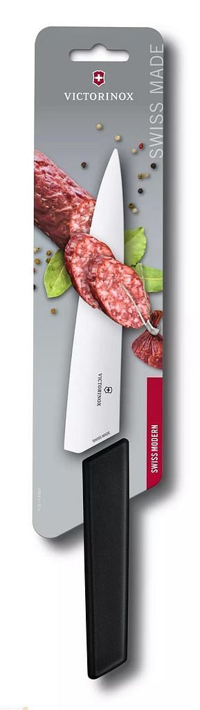 Dopřejte si dokonalý řez s kuchyňským nožem VICTORINOX Modern Carving Knife! Tento švýcarský nůž je stvořený pro snadné a přesné porcování masa – bez námahy nakrájíte vepřovou plec, naporcujete steak nebo připravíte hovězí roštěnou.