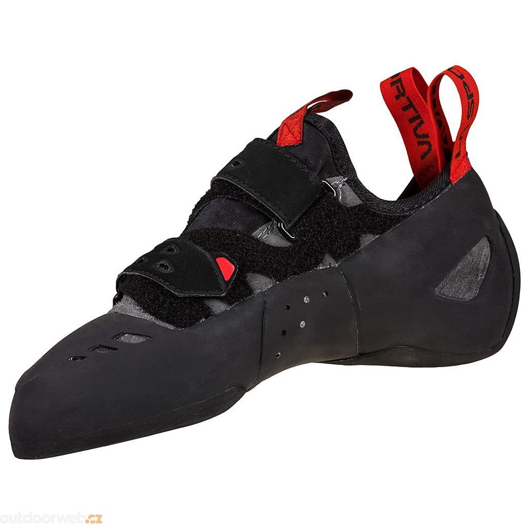 Nový model z řady lezeček Tarantula od italské značky La Sportiva pro ty, kteří chtějí začít s boulderingem nebo hledají pohodlnější lezečku. Od svých sester se liší především přidanou gumou na svrchní straně špičky pro snadnější hákování v převisech a upravenou patou pro snazší patování. Dobrou přilnavost na stupech zajišťuje podešev Frixion Black.