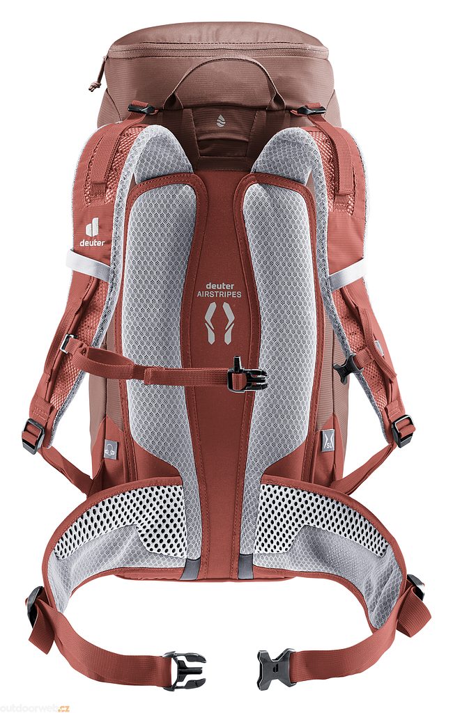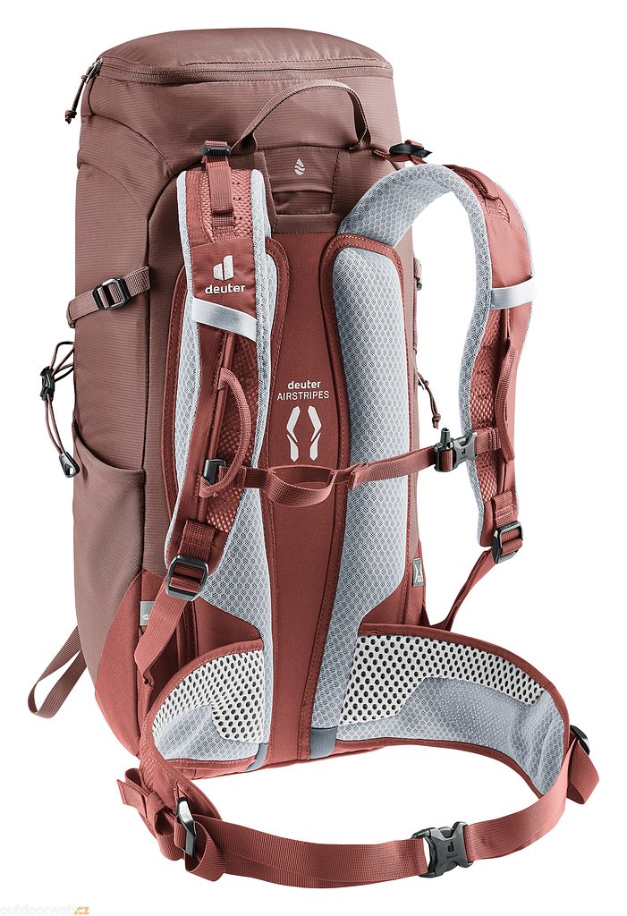 Zmenšená styčná plocha a velké větrací kanálky zádového systému deuter Airstripes v kombinaci s perforovanými ramenními popruhy a bederními žebry zajišťují maximální proudění vzduchu a rovnoměrné rozložení hmotnosti - pro pohodlné a bezpečné nošení v jakémkoli terénu.
