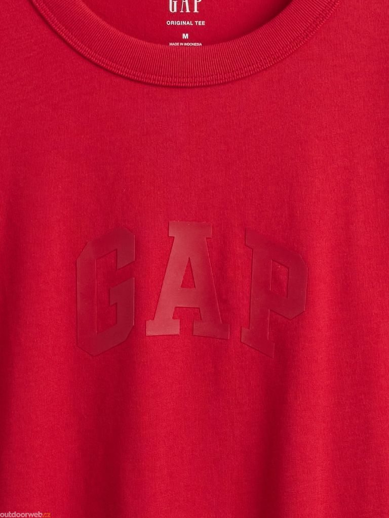 • Tričko má klasický kulatý výstřih, krátké rukávy a na hrudi ikonické obloukové logo Gap.