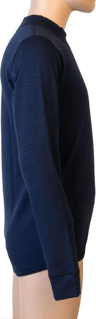 Tričko s dlouhým rukávem a potiskem vyrobené z úpletu unikátní konstrukce kombinující polyester na vnitřní straně a vysoce kvalitní Merino vlnu z Nového Zélandu. Hlavní výhodou této kombinace je to, že polyester urychluje transport potu do vnější vlněné vrstvy, která má jedinečný antiodor zabraňující tvoření pachů a navíc má skvělou termoregulační funkci.