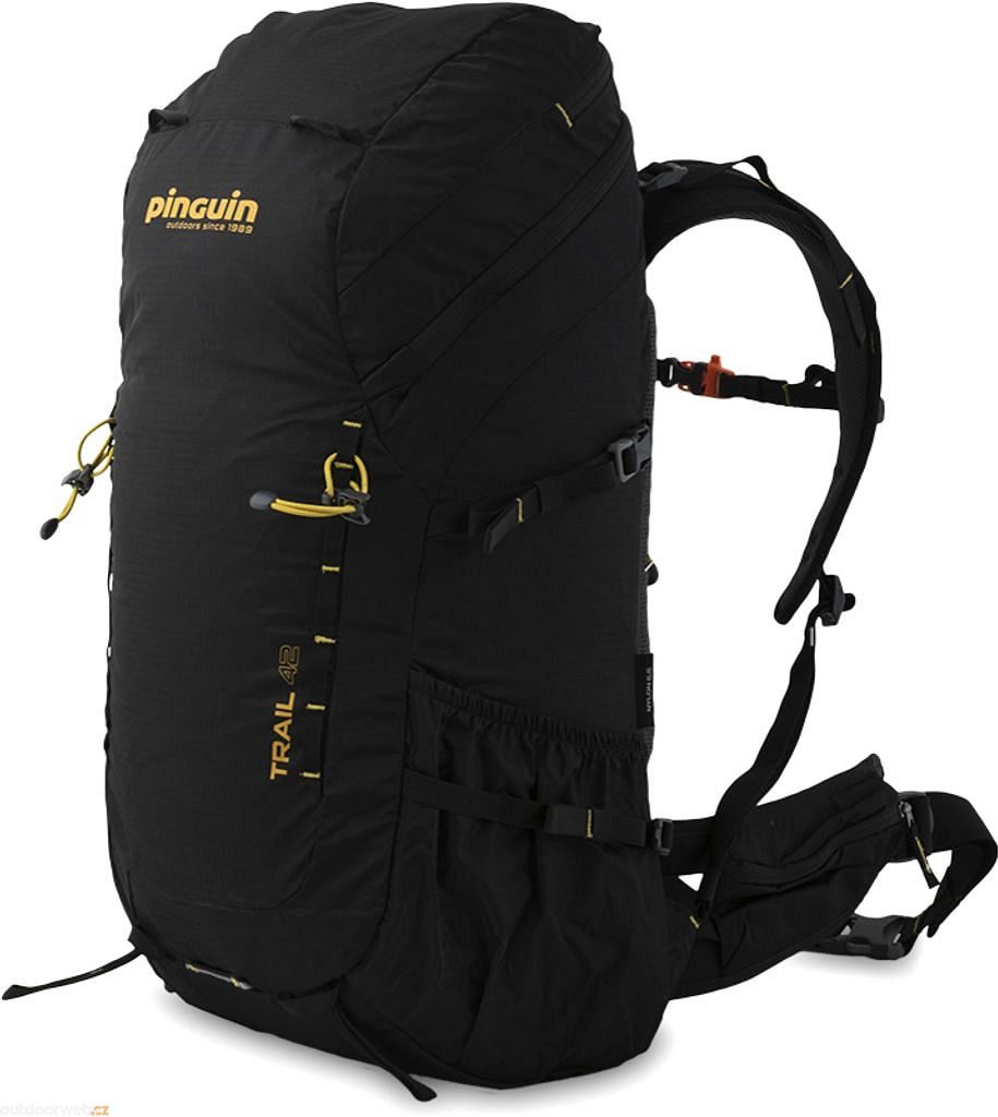 Trekový jednokomorový batoh Trail 42 značky Pinguin o objemu 42L disponuje vrchním plněním a odvětraným zádovým systémem a je tak vhodný na vícedenní trek. Zádový systém zajišťuje, aby těžiště batohu bylo co nejblíže zádům a zároveň, aby docházelo k maximálnímu odvětrání.