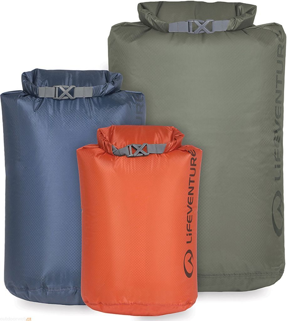 Ultralight Dry Bags Multipack je sada tří voděodolných vaků o objemech 5, 10 a 25 litrů, které ochrání vaše vybavení před vlhkostí i deštěm. Díky ultralehké tkanině Cordura® ripstop a plně podlepeným švům jsou vaky nejen mimořádně lehké, ale také vysoce odolné. Rolovací uzávěr s přezkou Kross zajišťuje absolutně těsné uzavření a poloprůhledné barvy usnadňují orientaci v uloženém vybavení.