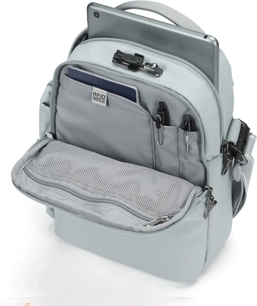 - Bezpečnostní technologie proti krádeži, včetně RFID blokování a proříznutí odolného popruhu.