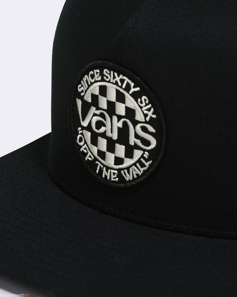 Objektem vaší touhy se stane černá kšiltovka VANS, která přichází s ikonickým šachovnicovým vzorem na čele a rovným kšiltem, jež přidává na streetovém stylu.
