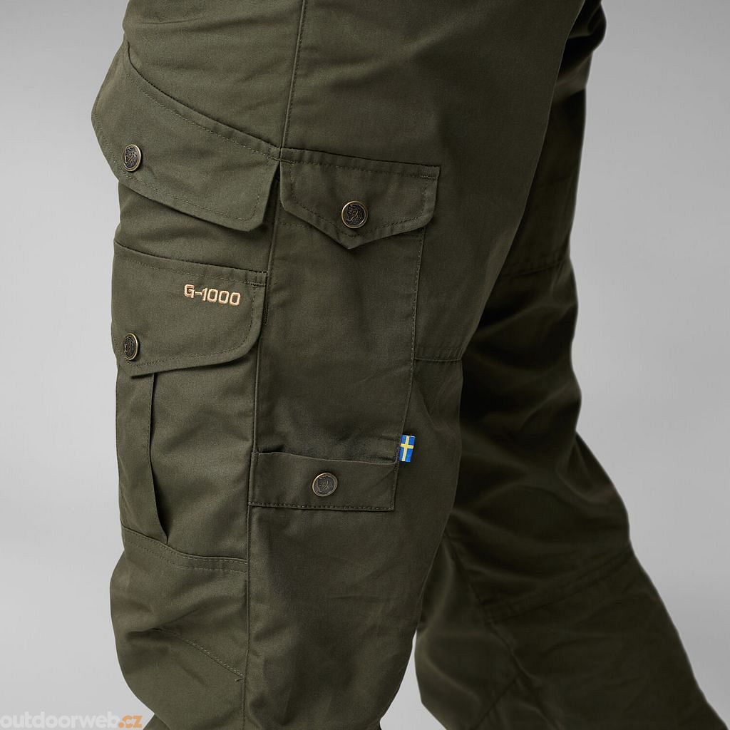 Odolné trekové kalhoty pro dobrodružství v horách a lese. Vyrobeny z odolné větru a vodě odolné tkaniny G-1000 Eco s dvojitou vrstvou přes zadní část a kolena. Pravidelný pas (střední pas) a regular fit s předtvarovanými koleny.