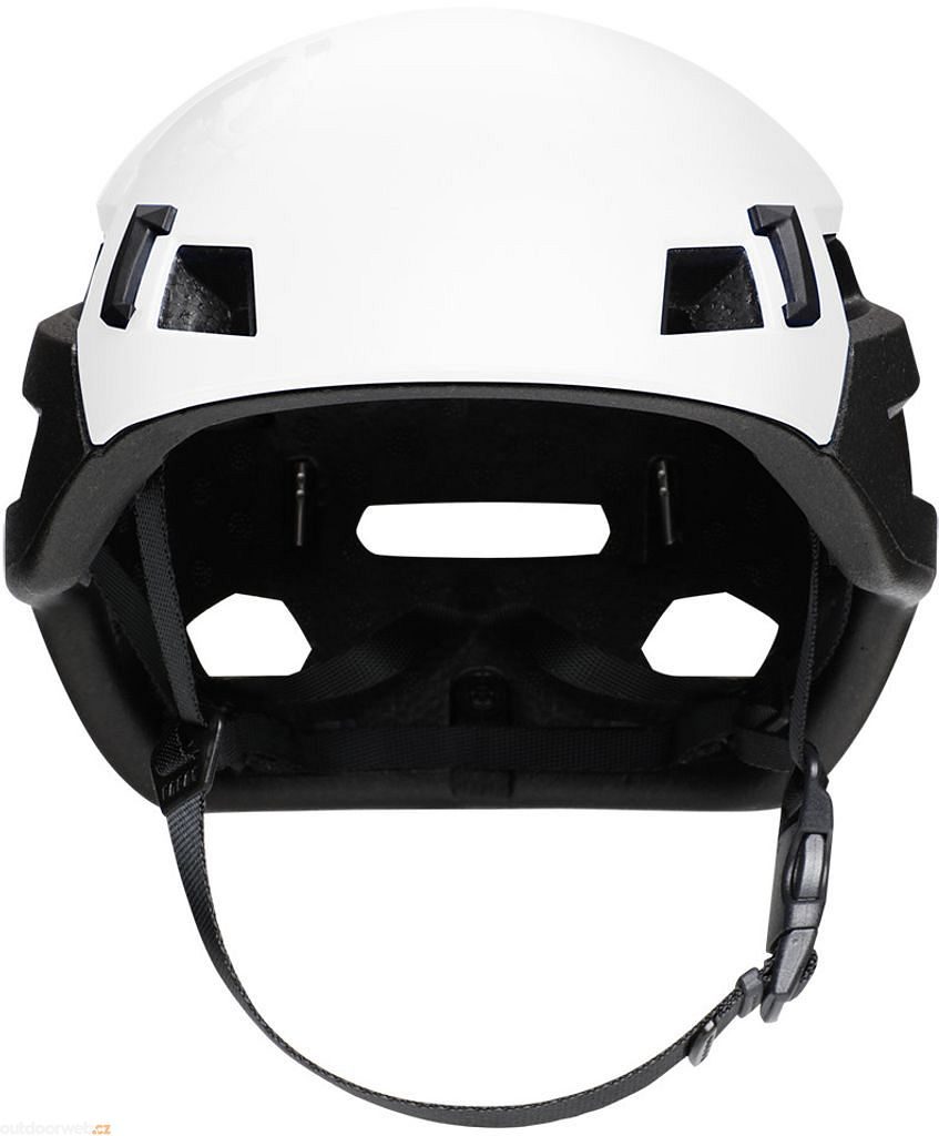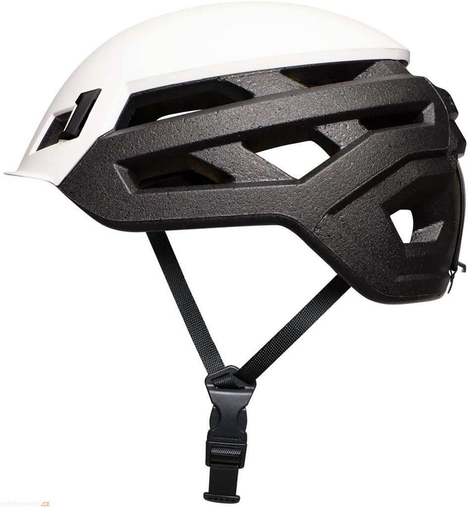 Prvotřídní lezecká helma Wall Rider od švýcarské značky Mammut s velmi nízkou váhou, které bylo dosaženo použitím materiálu EPP a absolutně minimalistického zapínacího systému.