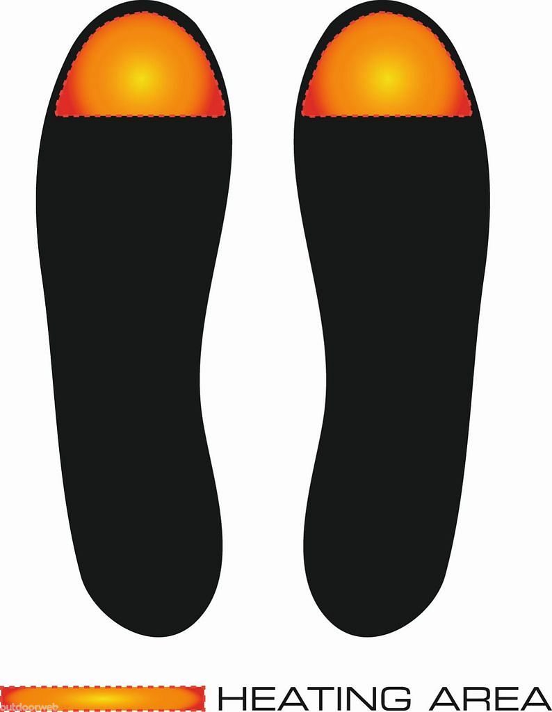 Topný element je umístěný v oblasti prstů a dobíjecí baterie jsou zabudovány v zadní části vložky pod patou.